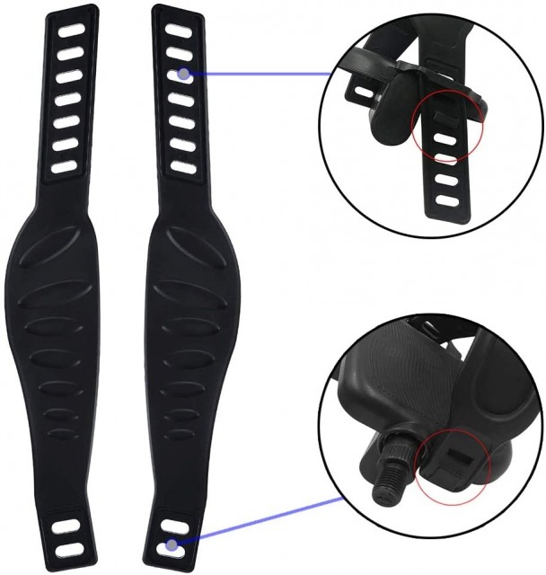 Sorte pedalstropper til ergometersykkel som gir trygg og stabil fotplass under trening. Stroppene har flere hull for enkel justering, slik at de kan tilpasses ulike skostørrelser og ønsket passform. Passer til de fleste ergometersykler og er en praktisk løsning for å erstatte slitte eller ødelagte stropper. Enkle å montere og laget for jevn og sikker tråkkefølelse gjennom hele økten.